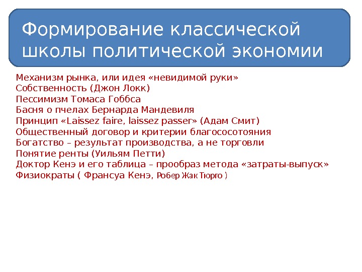 Формирование классической школы политической экономии Механизм рынка, или