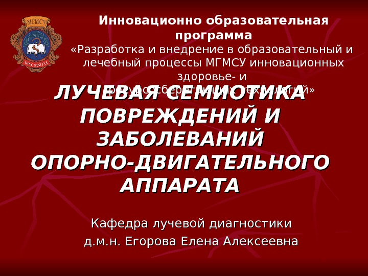 ЛУЧЕВАЯ СЕМИОТИКА ПОВРЕЖДЕНИЙ И ЗАБОЛЕВАНИЙ ОПОРНО-ДВИГАТЕЛЬНОГО АППАРАТА Кафедра