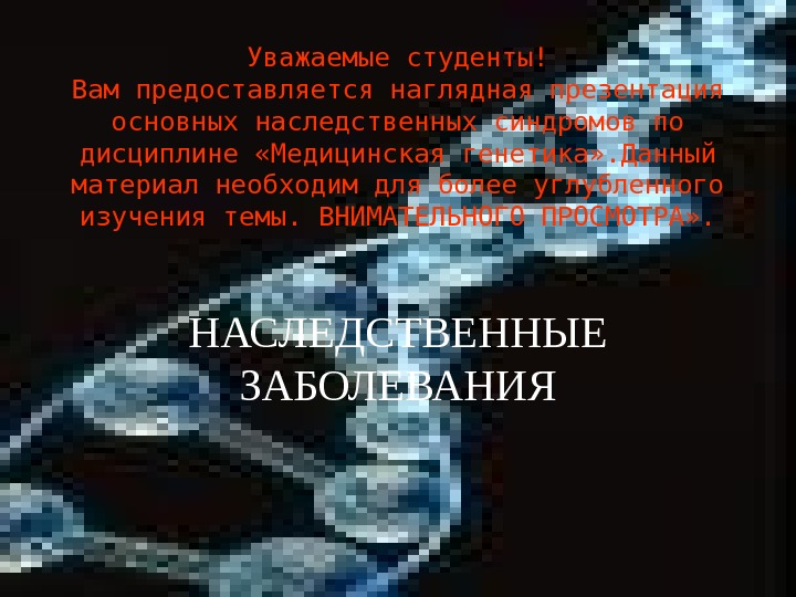 Уважаемые студенты! Вам предоставляется наглядная презентация основных наследственных