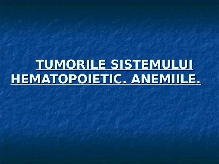 TUMORILE SISTEMULUI HEMATOPOIETIC. ANEMIILE. Măduva osoasă pioidă