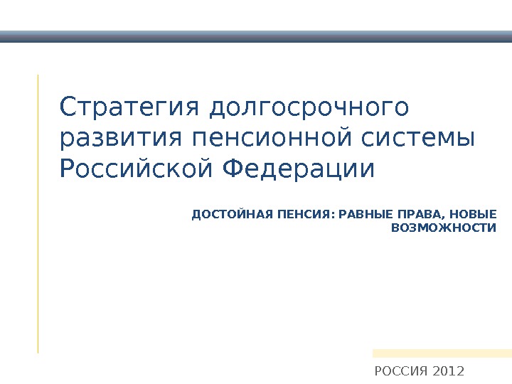 Стратегия долгосрочного развития пенсионной системы Российской Федерации РОССИЯ