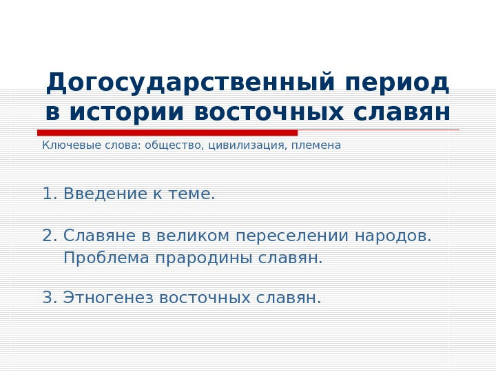 Догосударственный период в истории восточных славян Ключевые слова: