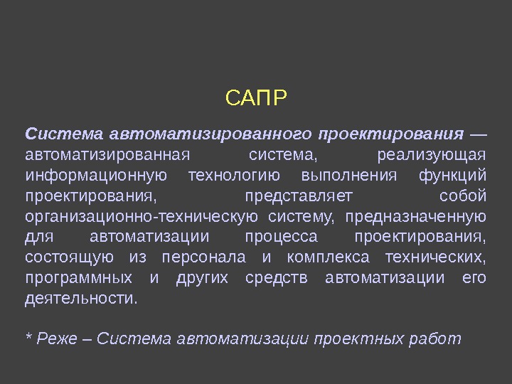 САПР Система автоматизированного проектирования — автоматизированная система,