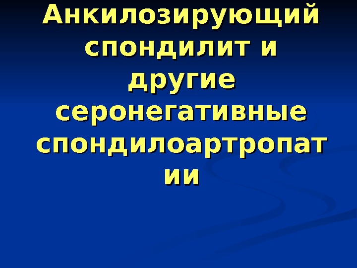 Анкилозирующий спондилит и другие серонегативные спондилоартропат ииии
