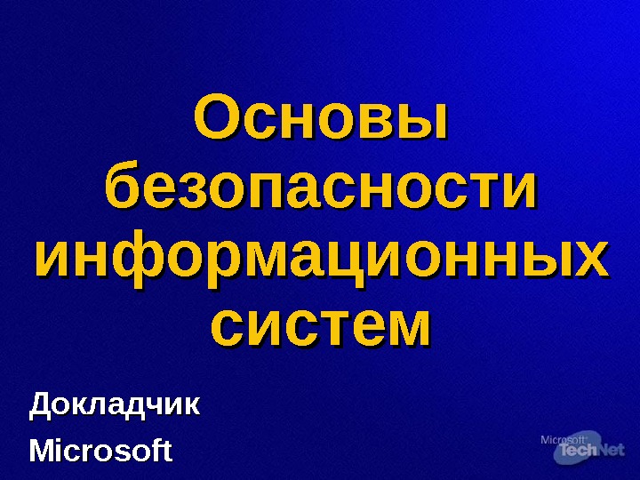 Основы безопасности информационных систем Докладчик Microsoft Содержание
