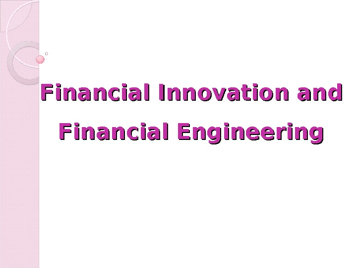 Financial Innovation and Financial Engineering LITERATURE: 1.