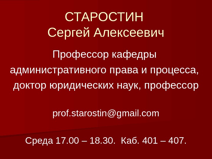 СТАРОСТИН Сергей Алексеевич Профессор кафедры административного права и