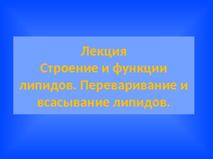 Лекция Строение и функции липидов. Переваривание и всасывание