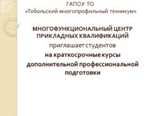 ГАПОУ ТО «Тобольский многопрофильный техникум» МНОГОФУНКЦИОНАЛЬНЫЙ ЦЕНТР ПРИКЛАДНЫХ