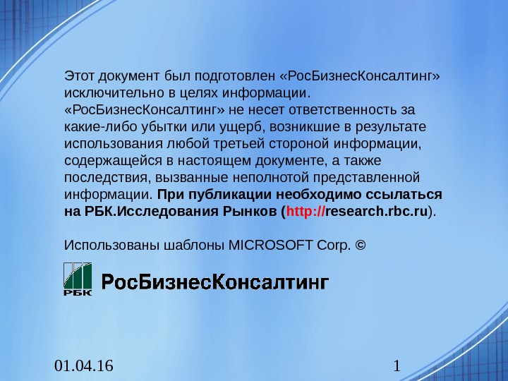 01. 04. 16 1 Этот документ был подготовлен