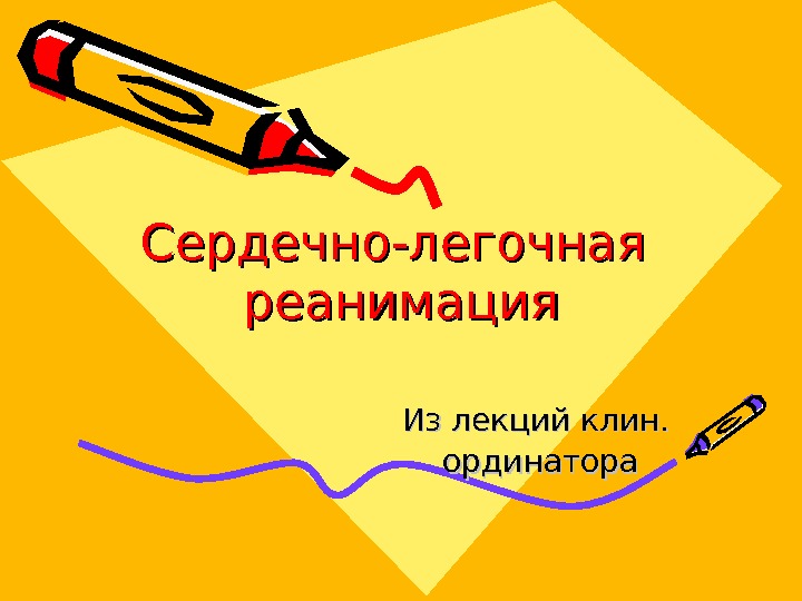 Сердечно-легочная реанимация Из лекций клин. ординатора