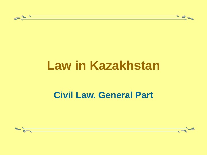 Law in Kazakhstan Civil Law. General Part