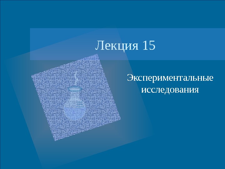 Лекция 15 Экспериментальные исследования 2 План лекции