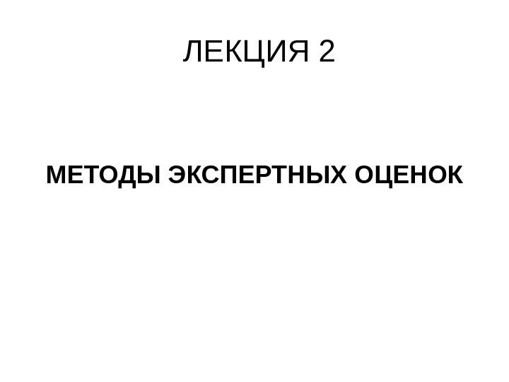 ЛЕКЦИЯ 2 МЕТОДЫ ЭКСПЕРТНЫХ ОЦЕНОК Методы экспертных