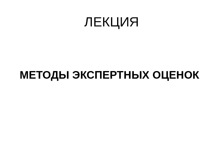 ЛЕКЦИЯ МЕТОДЫ ЭКСПЕРТНЫХ ОЦЕНОК Методы экспертных оценок