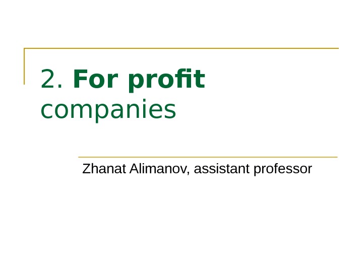 2. For profit companies Zhanat Alimanov, assistant