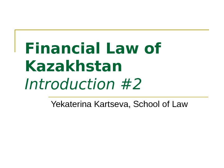 Financial Law of Kazakhstan Introduction #2 Yekaterina Kartseva,