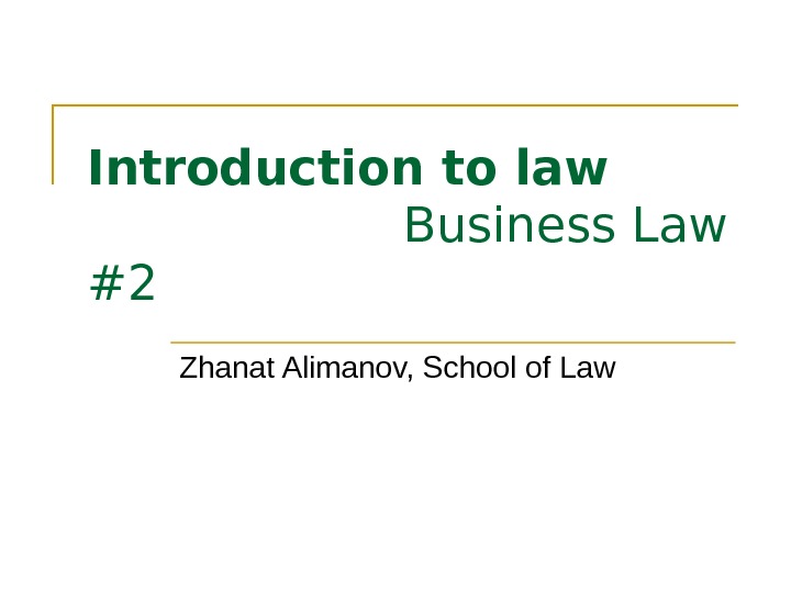 Introduction to law Business Law #2 Zhanat Alimanov,