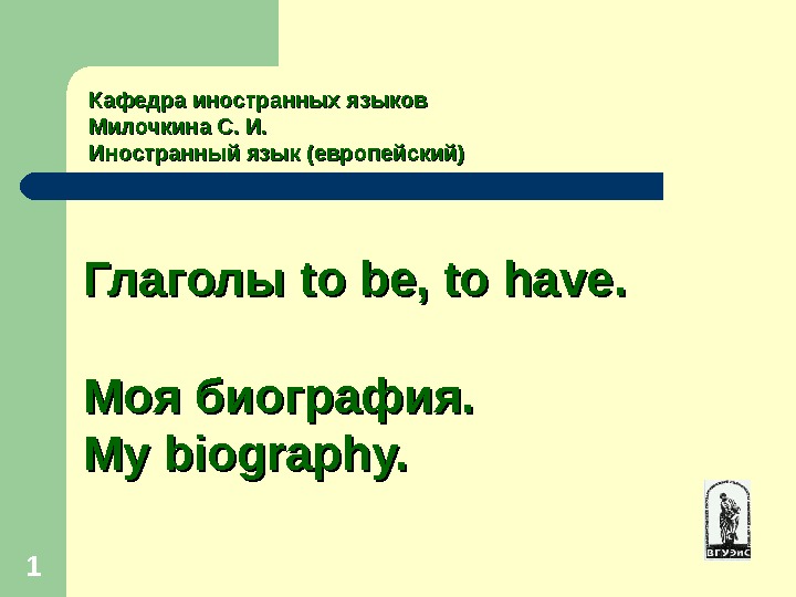 11 Кафедра иностранных языков Милочкина С. И. Иностранный