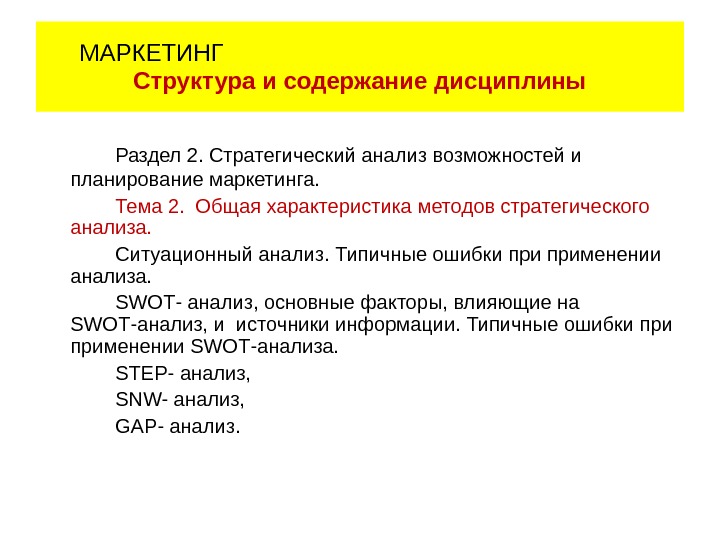 Раздел 2. Стратегический анализ возможностей и планирование маркетинга.