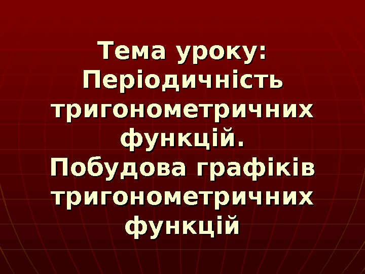 Тема уроку: Періодичність тригонометричних функцій. Побудова графіків тригонометричних