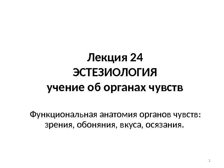 Лекция 24 ЭСТЕЗИОЛОГИЯ учение об органах чувств Функциональная