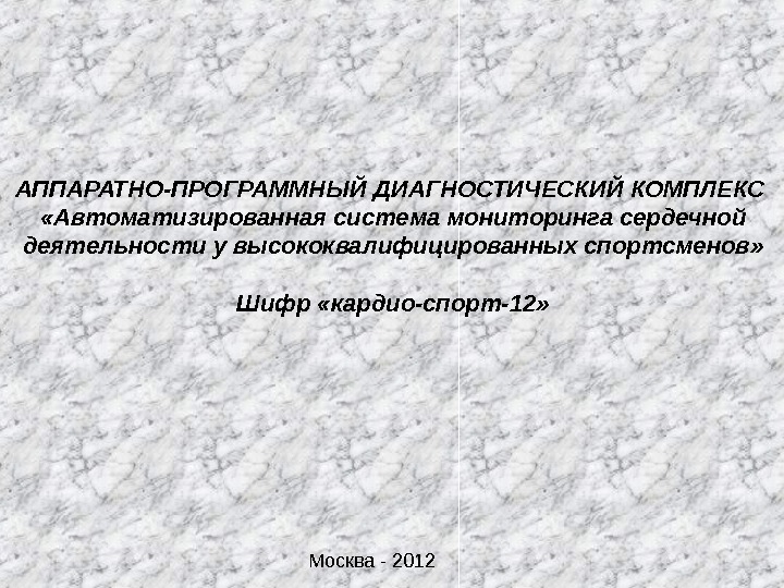 АППАРАТНО-ПРОГРАММНЫЙ ДИАГНОСТИЧЕСКИЙ КОМПЛЕКС «Автоматизированная система мониторинга сердечной