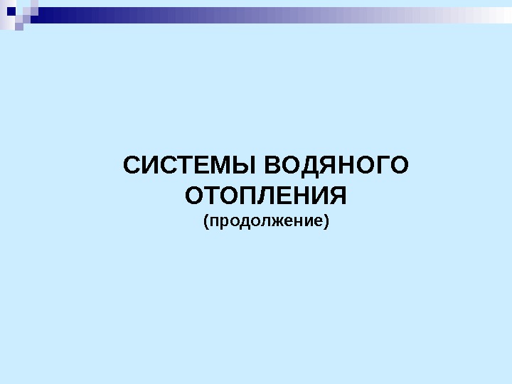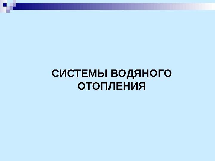 СИСТЕМЫ ВОДЯНОГО ОТОПЛЕНИЯ (продолжение) Принципиальная схема тупиковой