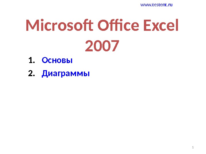 1 Microsoft Office Excel 2007 1. Основы 2.