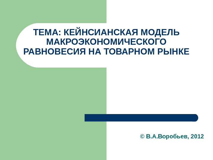 ТЕМА: КЕЙНСИАНСКАЯ МОДЕЛЬ МАКРОЭКОНОМИЧЕСКОГО РАВНОВЕСИЯ НА ТОВАРНОМ РЫНКЕ