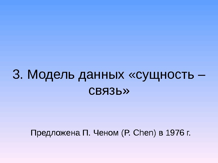 3. Модель данных «сущность – связь» Предложена П.