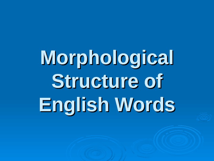 Morphological Structure of English Words The word