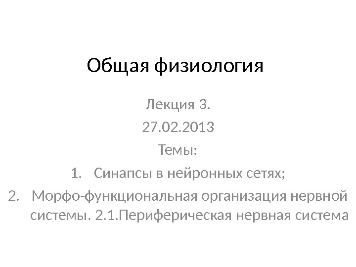 Общая физиология Лекция 3. 27. 02. 2013 Темы: