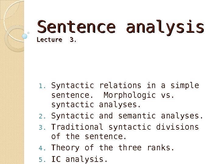 Sentence analysis Lecture 3. 1. Syntactic relations in