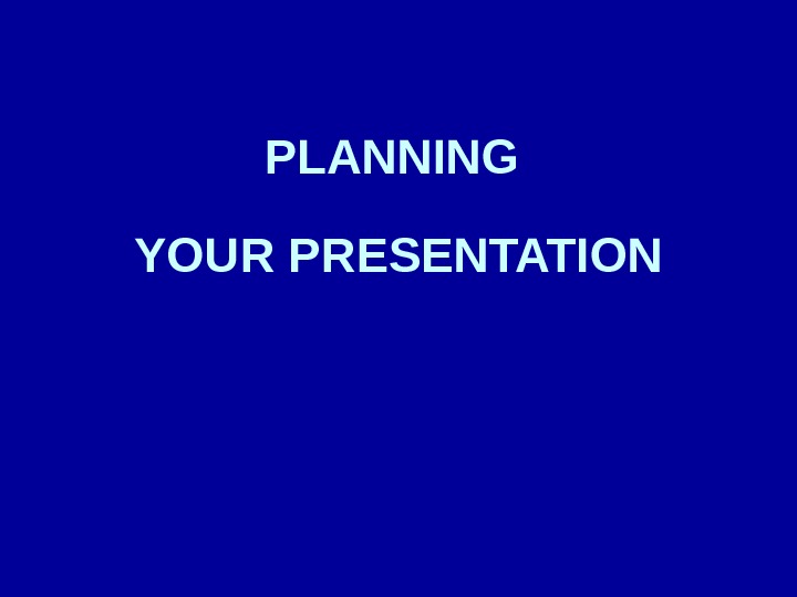 PLANNING YOUR PRESENTATION Planning Define clearly: