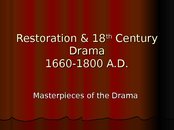 Restoration & 18 thth Century Drama 1660