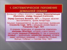 1. Систематическое положение домашней собаки Домашняя собака относится