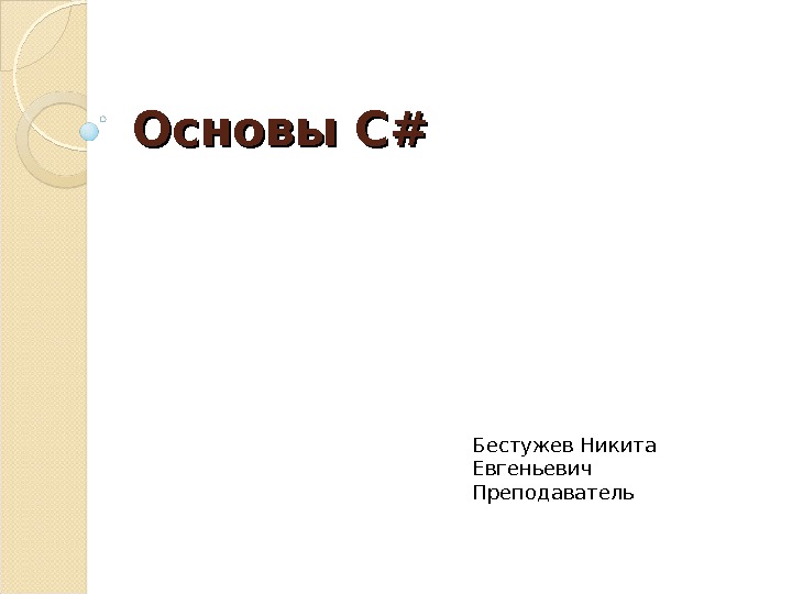 Основы C#C# Бестужев Никита Евгеньевич Преподаватель Содержание