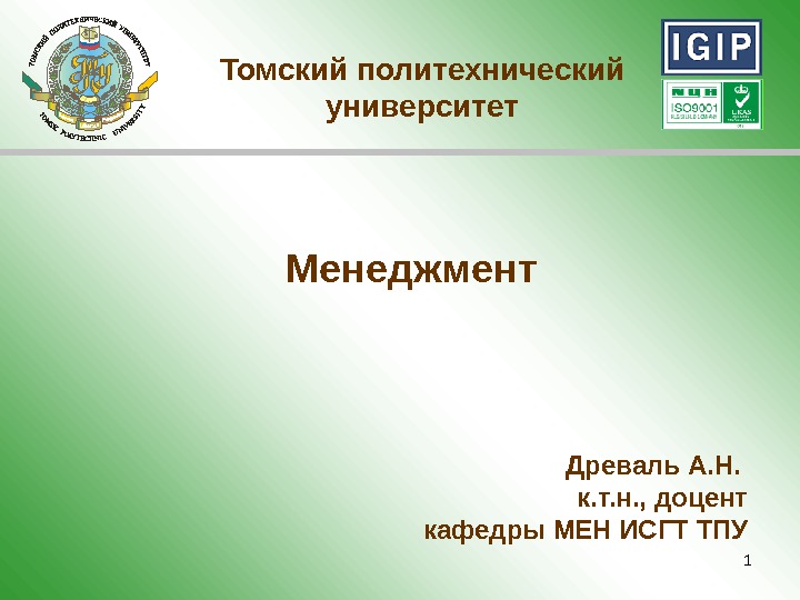 1 Менеджмент. Томский политехнический университет Древаль А. Н.