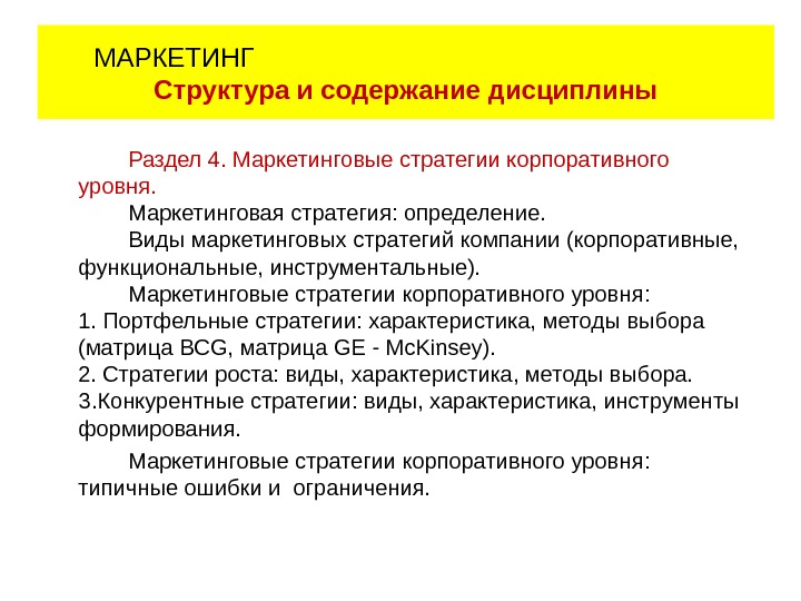 Раздел 4. Маркетинговые стратегии корпоративного уровня. Маркетинговая