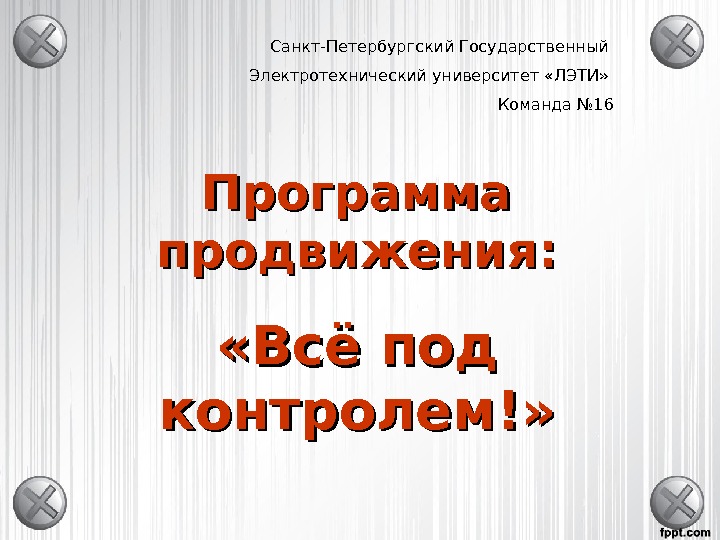 Программа продвижения: «Всё под контролем!» Санкт-Петербургский Государственный