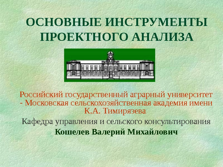 ОСНОВНЫЕ ИНСТРУМЕНТЫ ПРОЕКТНОГО АНАЛИЗА Российский государственный аграрный университет