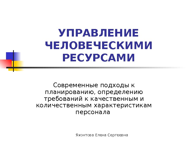 Яхонтова Елена Сергеевна. УПРАВЛЕНИЕ ЧЕЛОВЕЧЕСКИМИ РЕСУРСАМИ Современные подходы