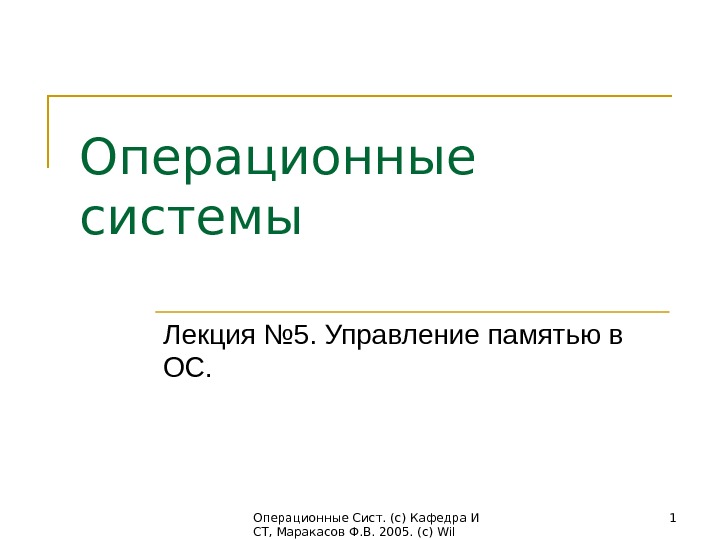 Операционные Сист. (с) Кафедра И СТ, Маракасов Ф.
