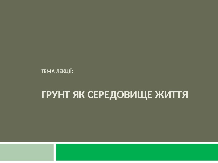 ТЕМА ЛЕКЦІЇ: ГРУНТ ЯК СЕРЕДОВИЩЕ ЖИТТЯ E