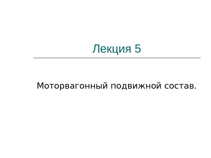 Лекция 5 Моторвагонный подвижной состав. По роду