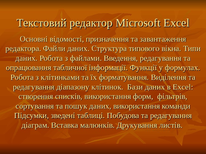 Текстовий редактор Microsoft Excel Основні відомості, призначення та