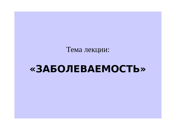 Тема лекции: «ЗАБОЛЕВАЕМОСТЬ» Собственно з аболеваемость