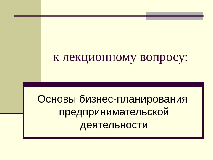 к лекционному вопросу: Основы бизнес-планирования предпринимательской