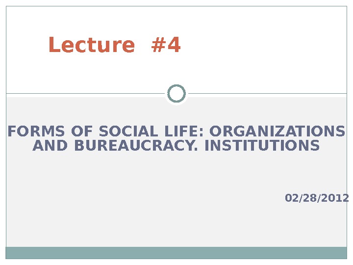 FORMS OF SOCIAL LIFE: ORGANIZATIONS AND BUREAUCRACY. INSTITUTIONS